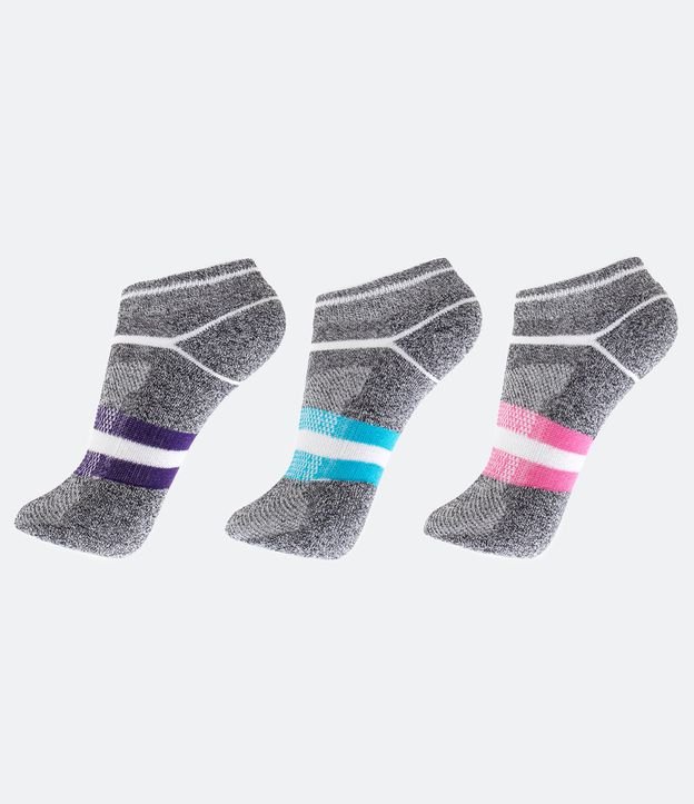 Kit 3 Meias Invisíveis em Poliamida com Listras Coloridas
