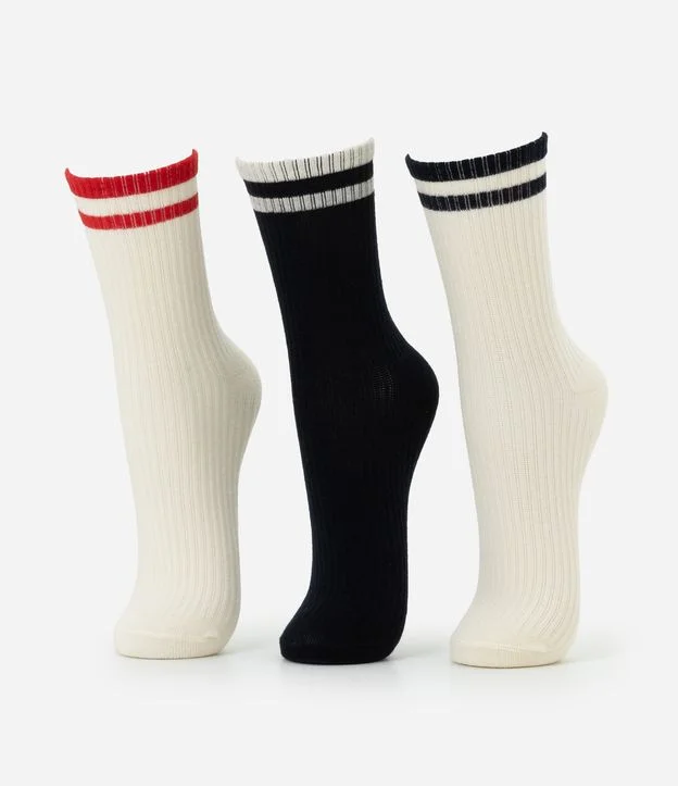 Kit com três pares de meias confeccionadas em algodão, com textura canelada e acabamento confortável. Os modelos possuem cano médio e apresentam logo GET aplicado, além de listras contrastantes na parte superior. O kit é composto por variações de cores marinho, vermelho e bege, conforme visual da imagem. Desenvolvido para a coleção Core, é indicado para uso diário e composições esportivas e casuais.