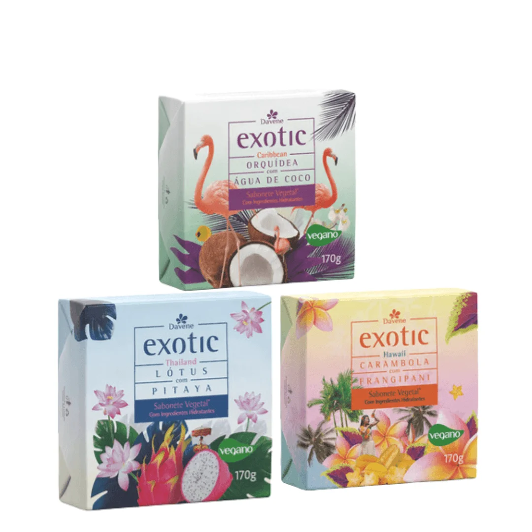 Kit 3 Sabonetes Linha Exotic Thailand Caribbean e Hawaii