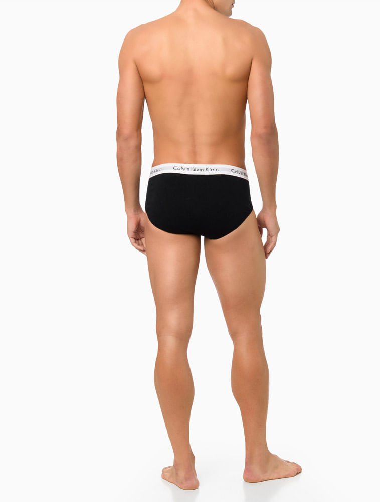 Kit 3 Underwear Brief Clássica Algodão Com Elastano Cintura Baixa Cuecas Calvin Klein - Multicolor Preto