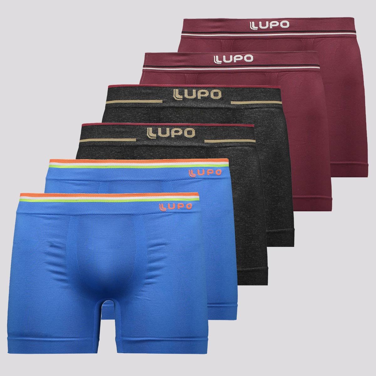 Kit 6 Cuecas Boxer Lupo Microfibra Sem Costura Vinho Preta e Azul