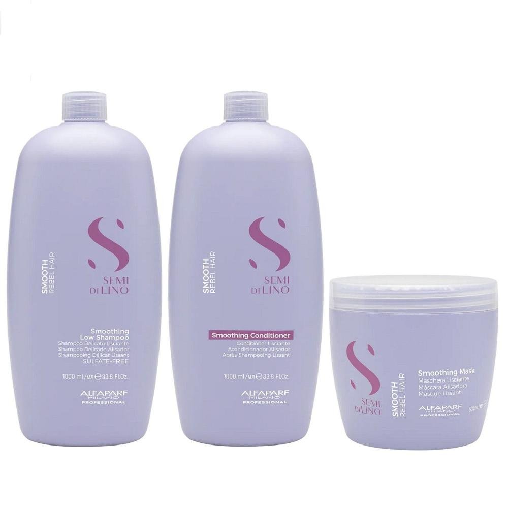 Kit Alfaparf Professional Semi Di Lino Smooth Smoothing - Shampoo & Condicionador 1 Litro + Máscara 500ml