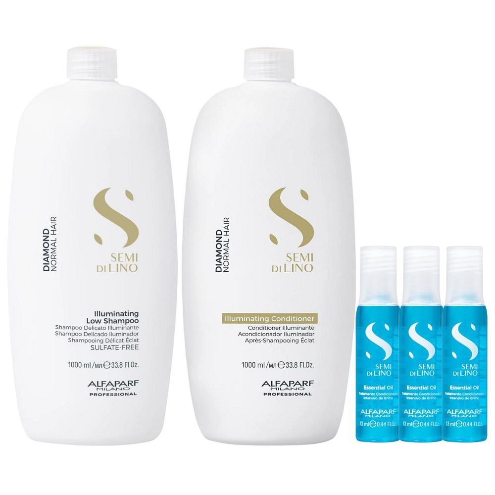 Kit Alfaparf Semi Di Lino Diamond - Shampoo 1L + Condicionador 1L + 3x Ampola 13ml