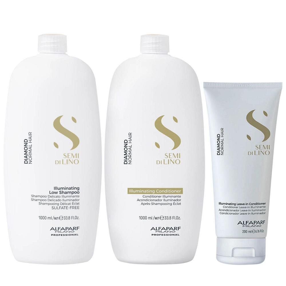 Kit Alfaparf Semi Di Lino Diamond - Shampoo 1L + Condicionador 1L + Leave in 200ml