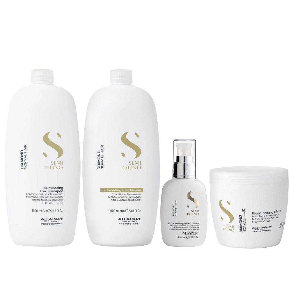 Kit Alfaparf Semi Di Lino Diamond - Shampoo 1L + Condicionador 1L + Máscara 500ml + Fluído 125ml