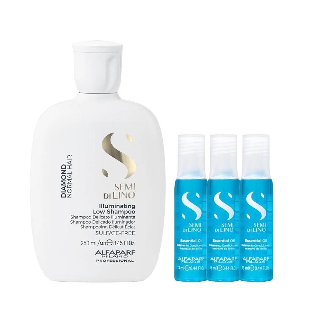 Kit Alfaparf Semi Di Lino Diamond - Shampoo 250ml + 3x Ampola 13ml ÚNICO