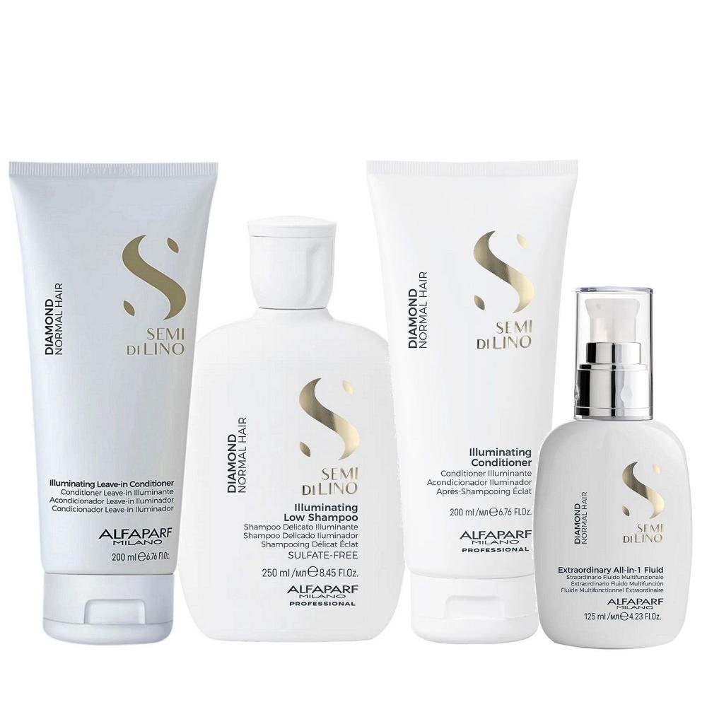 Kit Alfaparf Semi Di Lino Diamond - Shampoo 250ml + Condicionador 200ml + Leave in 200ml + Fluído 125ml