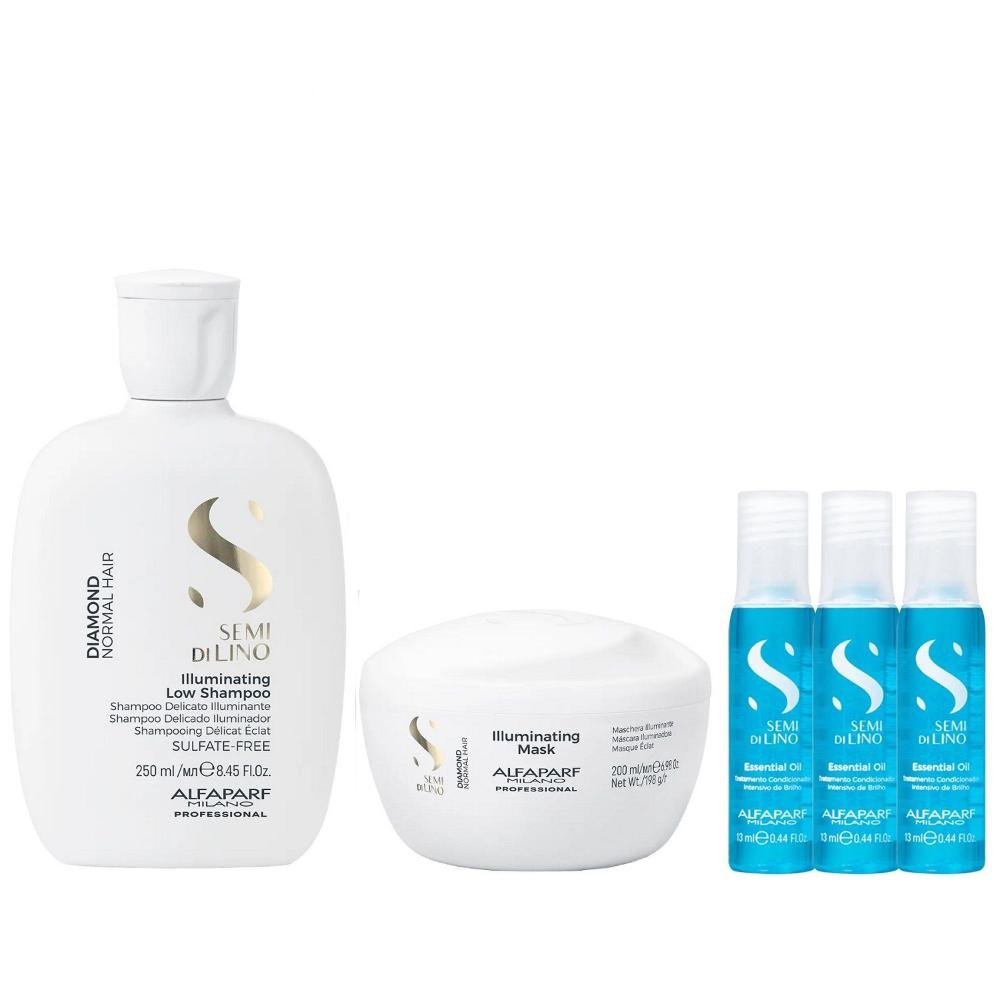 Kit Alfaparf Semi Di Lino Diamond - Shampoo 250ml + Máscara 200ml + 3x Ampola 13ml