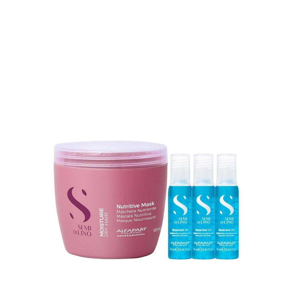 Kit Alfaparf Semi Di Lino Moisture - Máscara 500ml + 3x Ampola 13ml