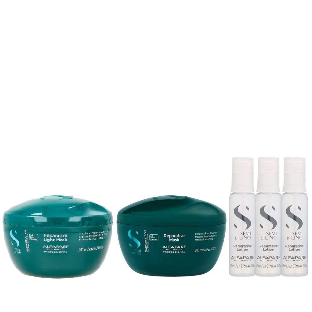 Kit Alfaparf Semi Di Lino Reconstruction - Máscara 200ml + Máscara Suave 200ml + 3x Ampola 13ml