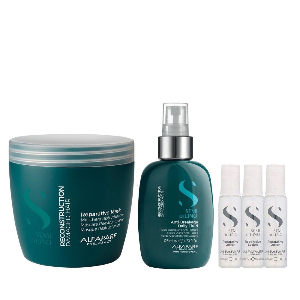 Kit Alfaparf Semi Di Lino Reconstruction - Máscara 500ml + Fluído 125ml + 3x Ampola 13ml