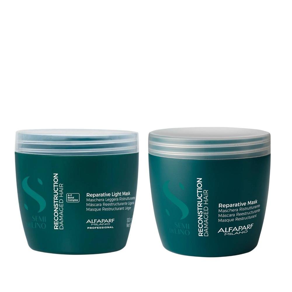 Kit Alfaparf Semi Di Lino Reconstruction - Máscara Reconstrutora 500ml + Máscara Reconstrutora Suave 500ml