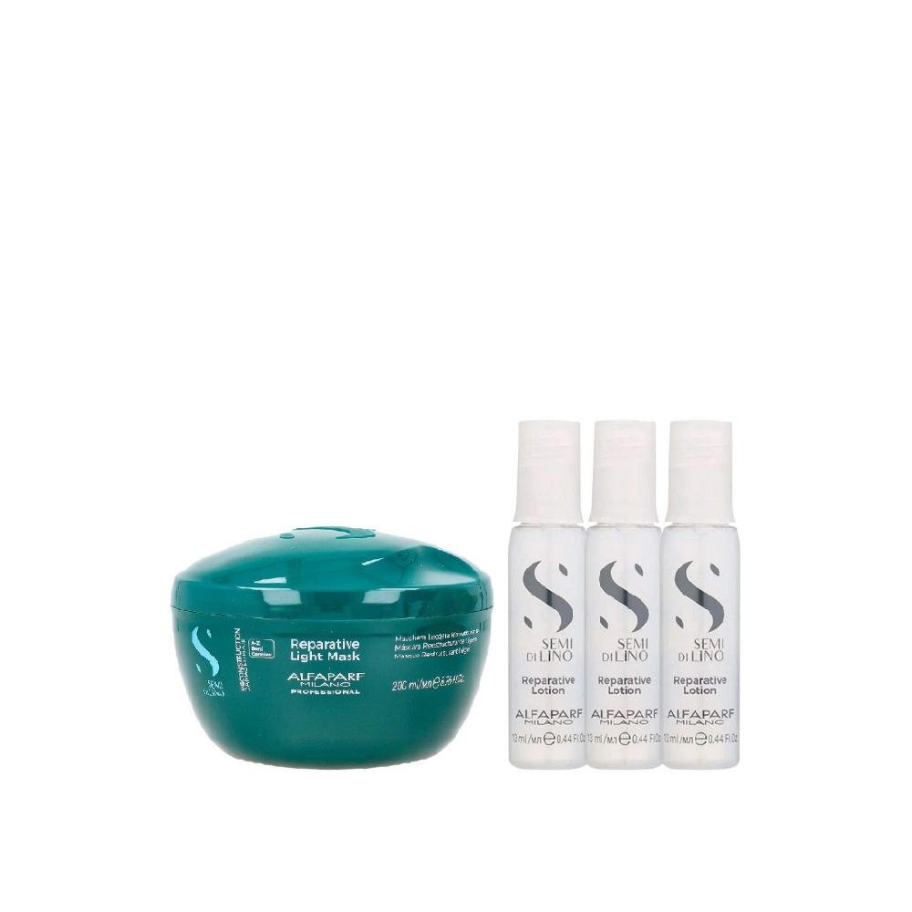 Kit Alfaparf Semi Di Lino Reconstruction - Máscara Suave 200ml + 3x Ampola 13ml