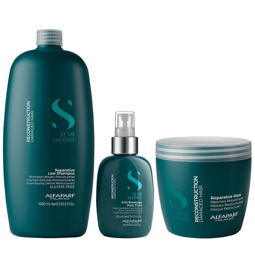 Kit Alfaparf Semi Di Lino Reconstruction - Shampoo 1L + Máscara 500ml + Fluído 125ml