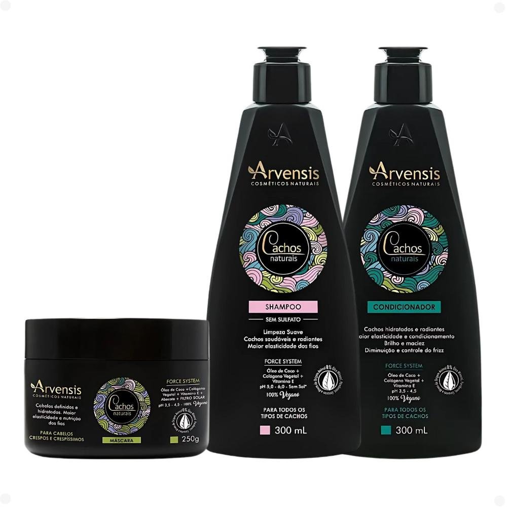 Kit Arvensis Cachos Naturais Cabelos Crespos e Crespíssimos: Shampoo 300ml, Condicionador 300ml e Máscara 250g
