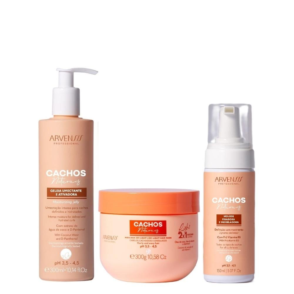 Kit Arvensis Cachos Naturais Light - Geleia Umectante 300ml + Máscara 2x1 300g + Mousse 150ml