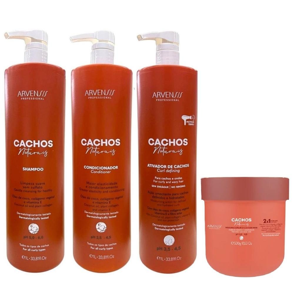 Kit Arvensis Cachos Naturais - Shampoo 1L + Condicionador 1L + Ativador de Cachos 1L + Máscara Capilar 2x1 500g