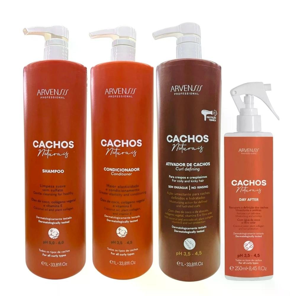 Kit Arvensis Cachos Naturais - Shampoo 1L + Condicionador 1L + Ativador De Cachos Crespos 1L + Day After 250ml