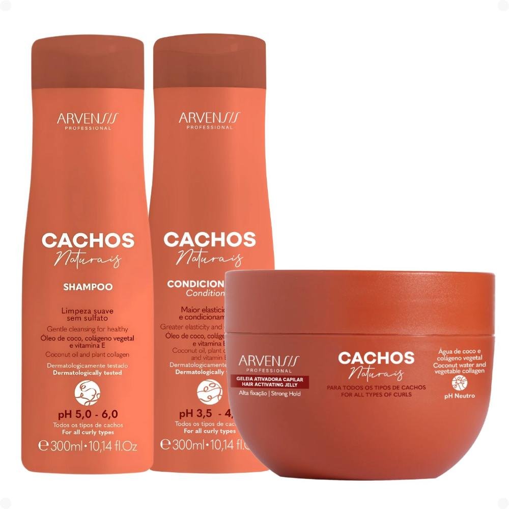Kit Arvensis Cachos Naturais: Shampoo, Condicionador e Máscara para Cabelos Crespos