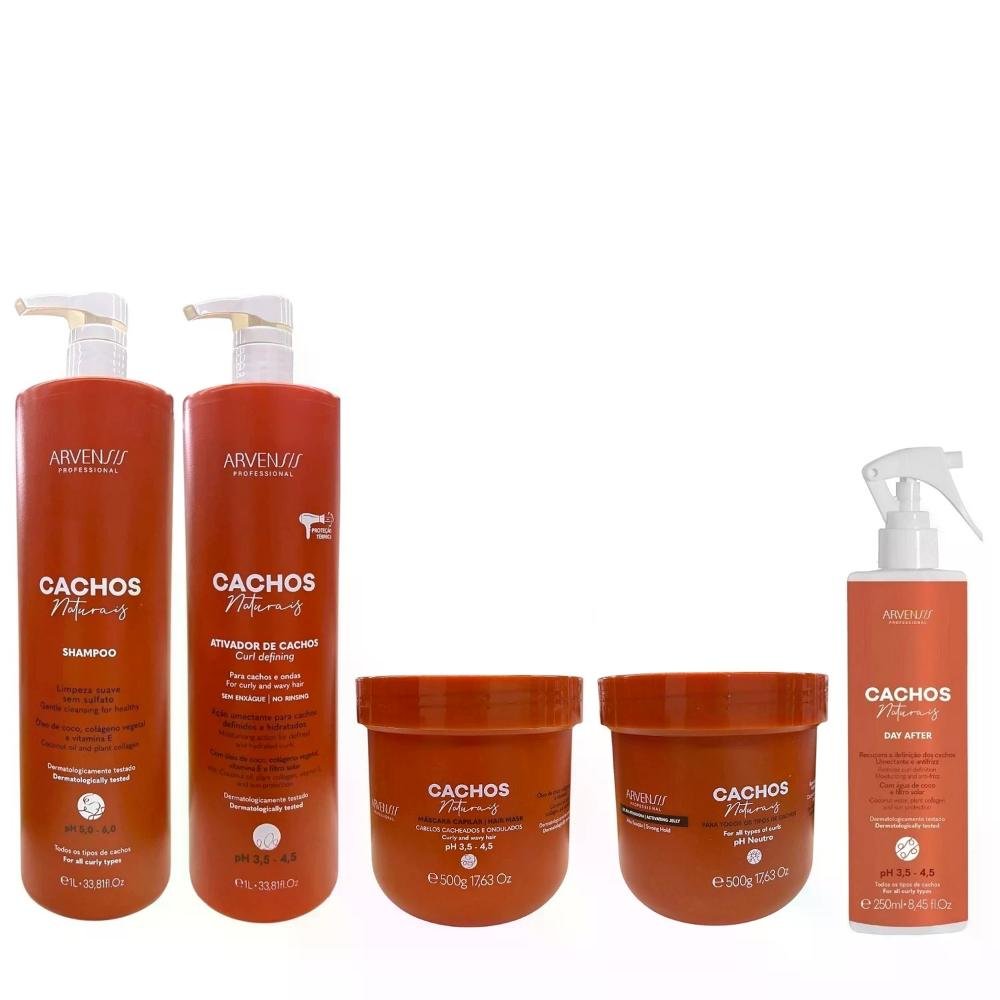 Kit Arvensis Cachos - Shampoo 1L + Ativador De Cachos 1L + Máscara 500g + Geleia Alta Fixação 500g + Day After 250ml