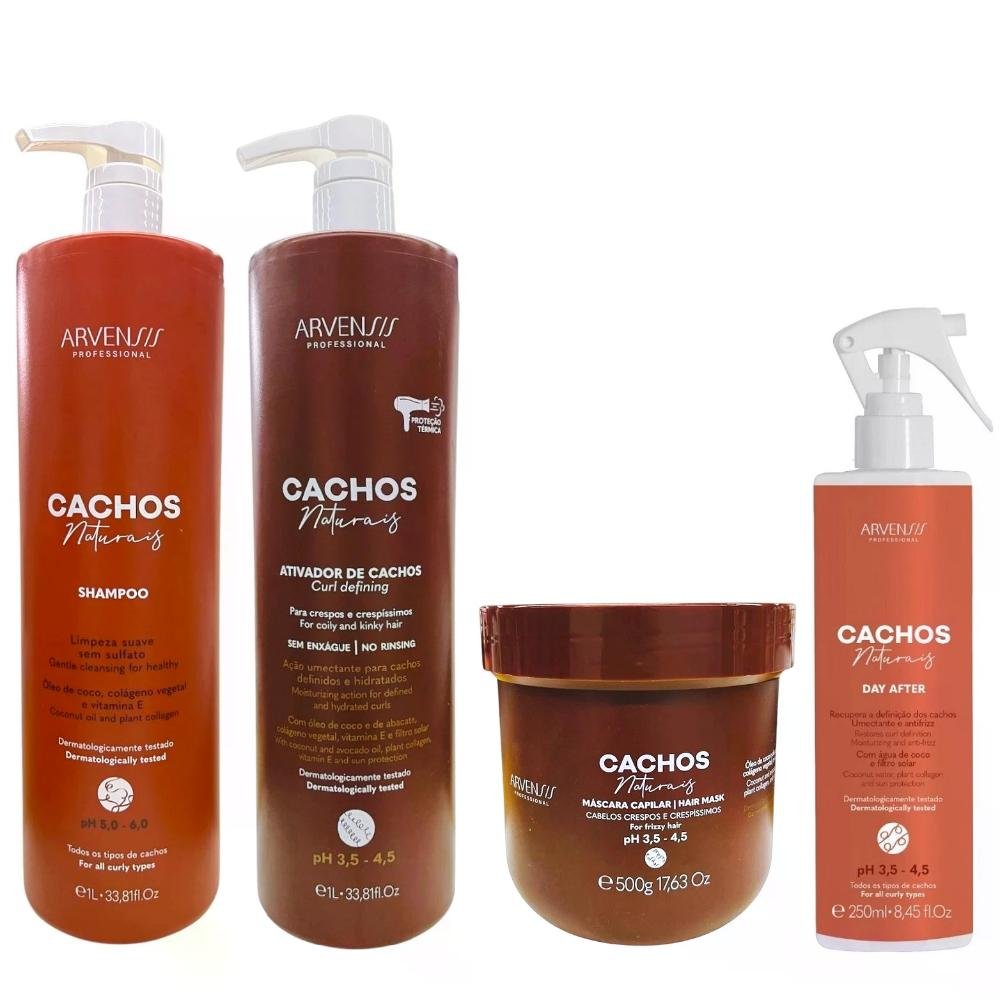 Kit Arvensis Cachos - Shampoo 1L + Ativador De Cachos Crespos 1L + Máscara Crespos 500g + Day After 250ml ÚNICO
