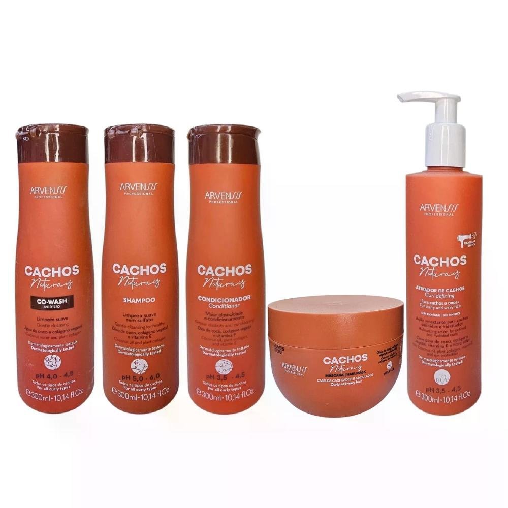 Kit Arvensis Cachos - Shampoo 300ml + Condicionador 300ml + Co-Wash 300ml + Ativador De Cachos 300ml + Máscara 250g