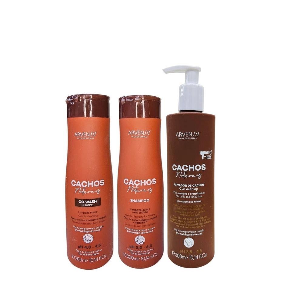 Kit Arvensis Professional Cachos Naturais - Co-Wash 300ml + Shampoo 300ml + Ativador De Cachos Crespos 300ml