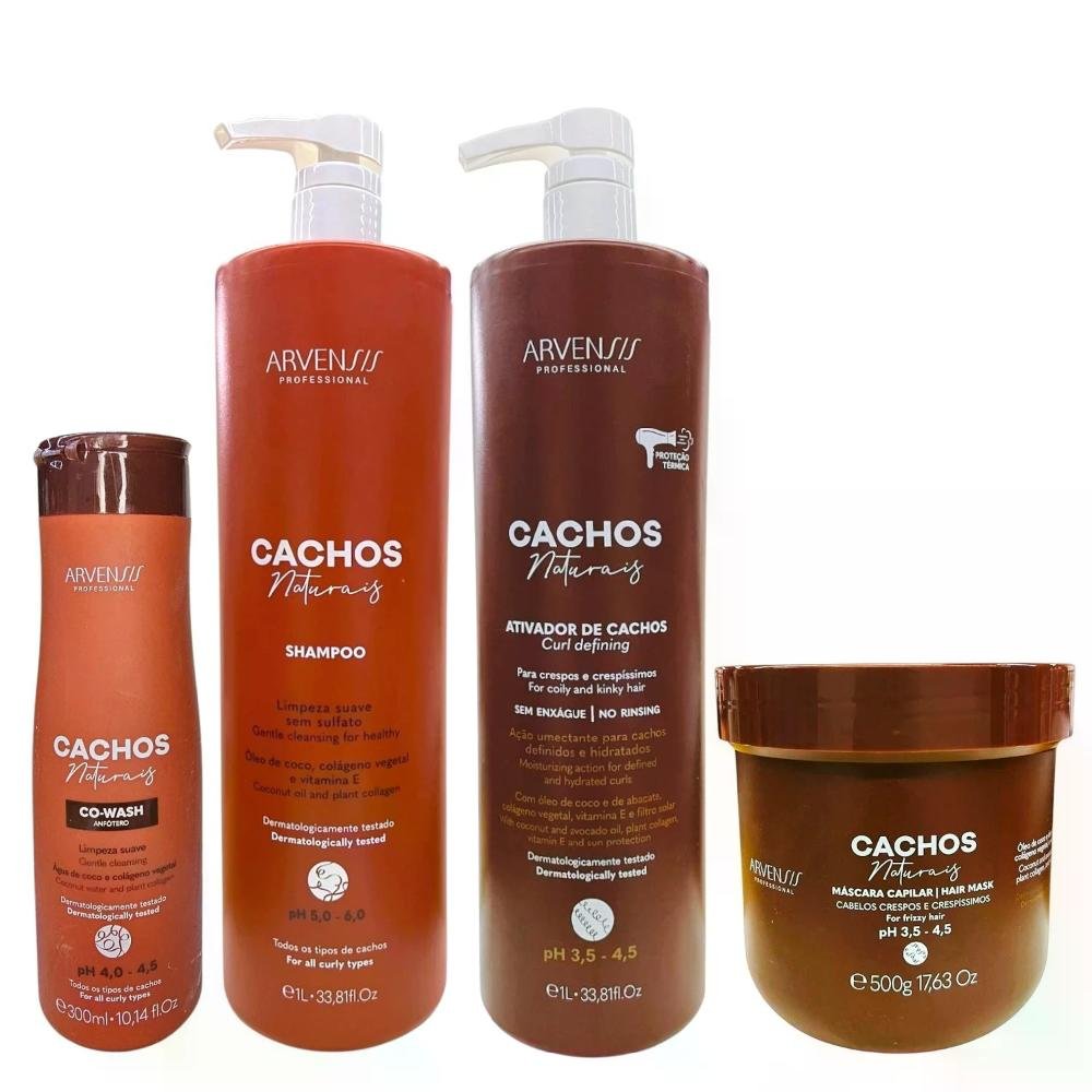 Kit Arvensis Professional Cachos Naturais - Shampoo 1L + Ativador Crespos 1L + Máscara Crespos 500g + Co-Wash 300ml