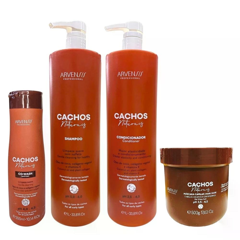 Kit Arvensis Professional Cachos Naturais - Shampoo 1L + Condicionador 1L + Máscara Crespos 500g + Co-Wash 300ml ÚNICO
