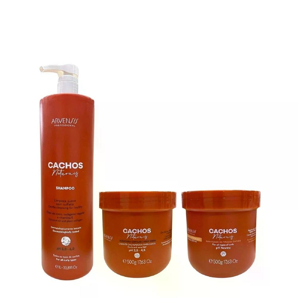 Kit Arvensis Professional Cachos Naturais - Shampoo 1L + Máscara 500g + Geleia Ativadora 500g