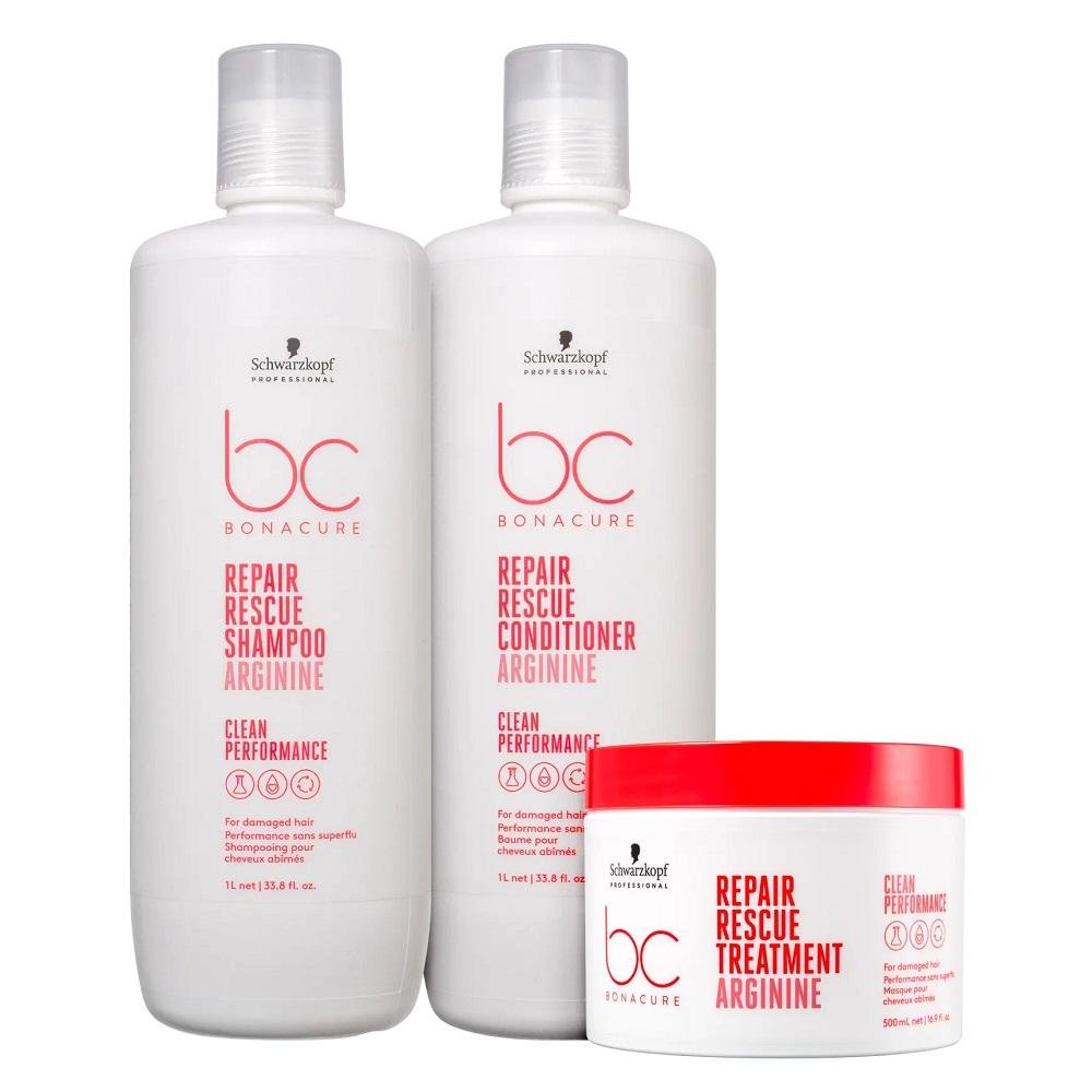 Kit BC Bonacure Schwarzkopf Repair Rescue - Shampoo 1L + Condicionador 1L + Máscara 500g