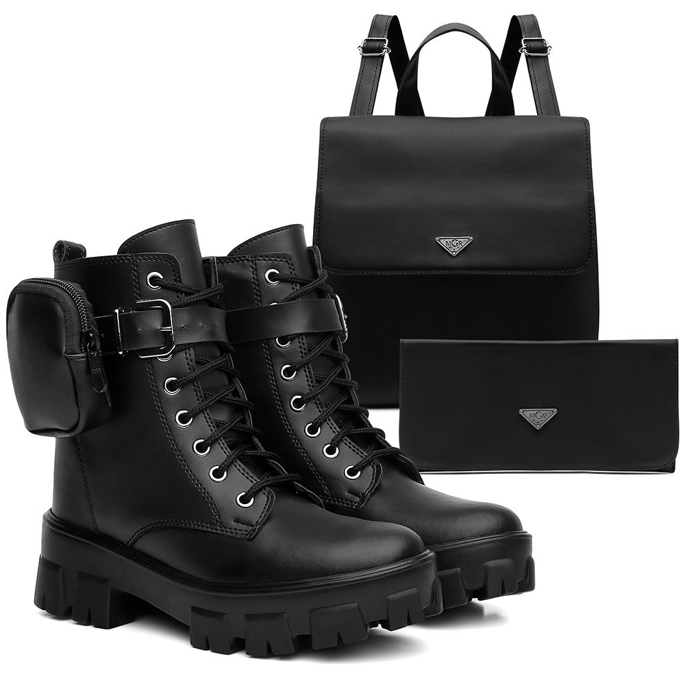 Kit Bota Tratorada Feminino Com Bolsinha Lateral Mochila Grande e Carteira