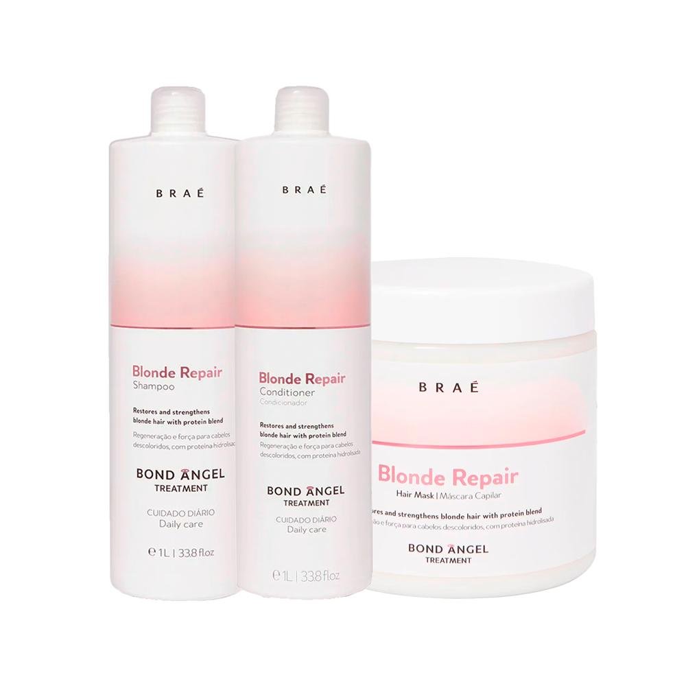 Kit Braé Blonde Repair - Shampoo 1000ml + Condicionador 1000ml + Máscara 500g