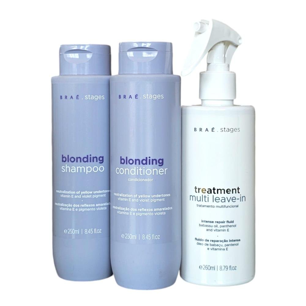 Kit Braé Stages Blonding - Shampoo 250ml + Condicionador 250ml + Treatment Leave-In Spray 260ml