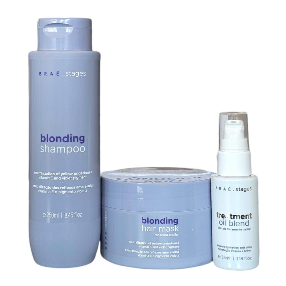 Kit Braé Stages Blonding - Shampoo 250ml + Máscara 200g + Treatment Oil Blend 35ml