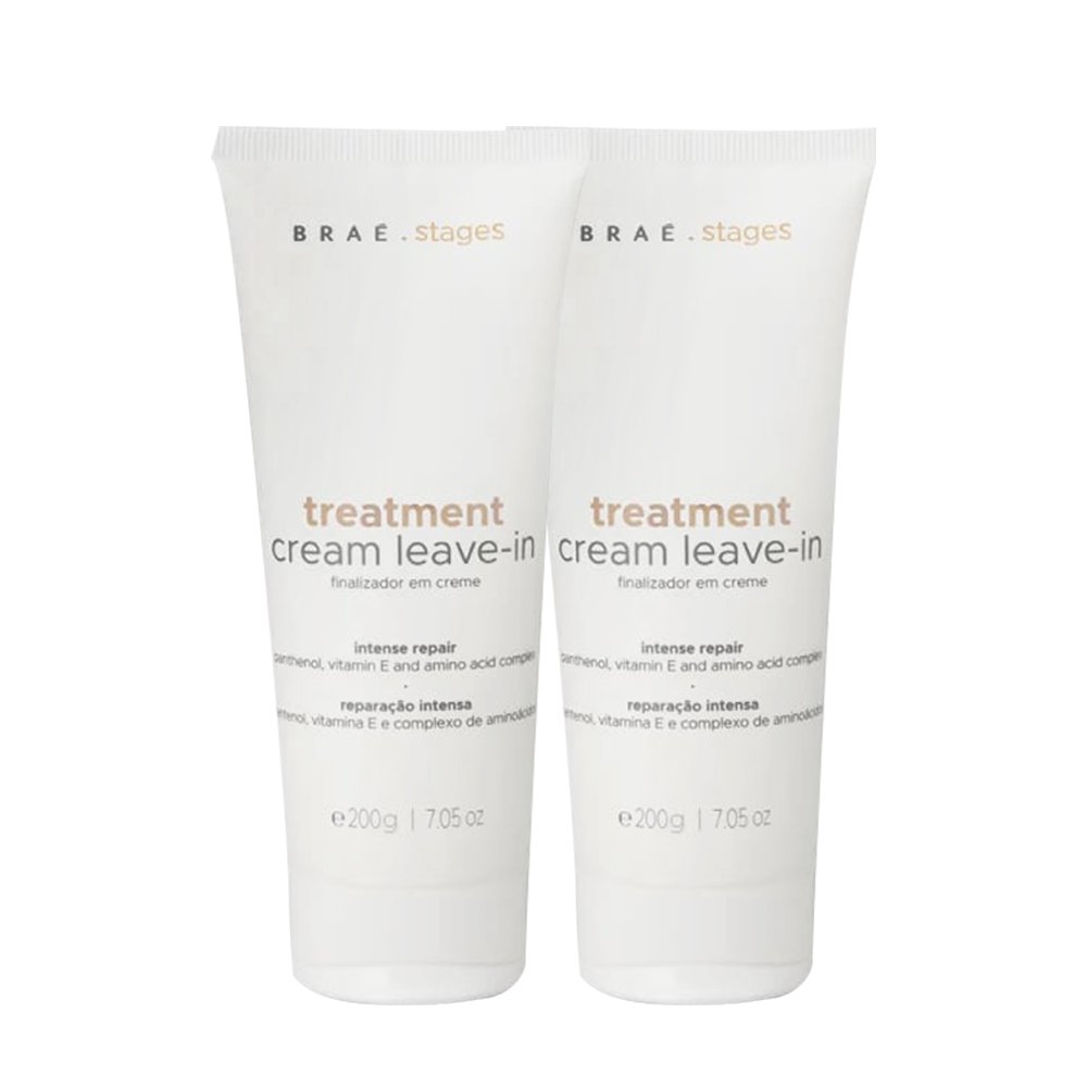 Brae Stages Treatment Cream - Leave-in 200g (2 unidades): para todos os tipos de cabelos, especialmente para fios medios e grossos. Poderoso tratamento de reparacao intensa, age diretamente nas partes mais danificadas, devolvendo a saude e a vitalidade que os seus cabelos precisam. Enriquecido com pantenol, vitamina E, aminoacidos. Promove nutricao intensa, reparacao, forca, maciez, brilho e previne pontas duplas. Com acao anti frizz e protecao termica.