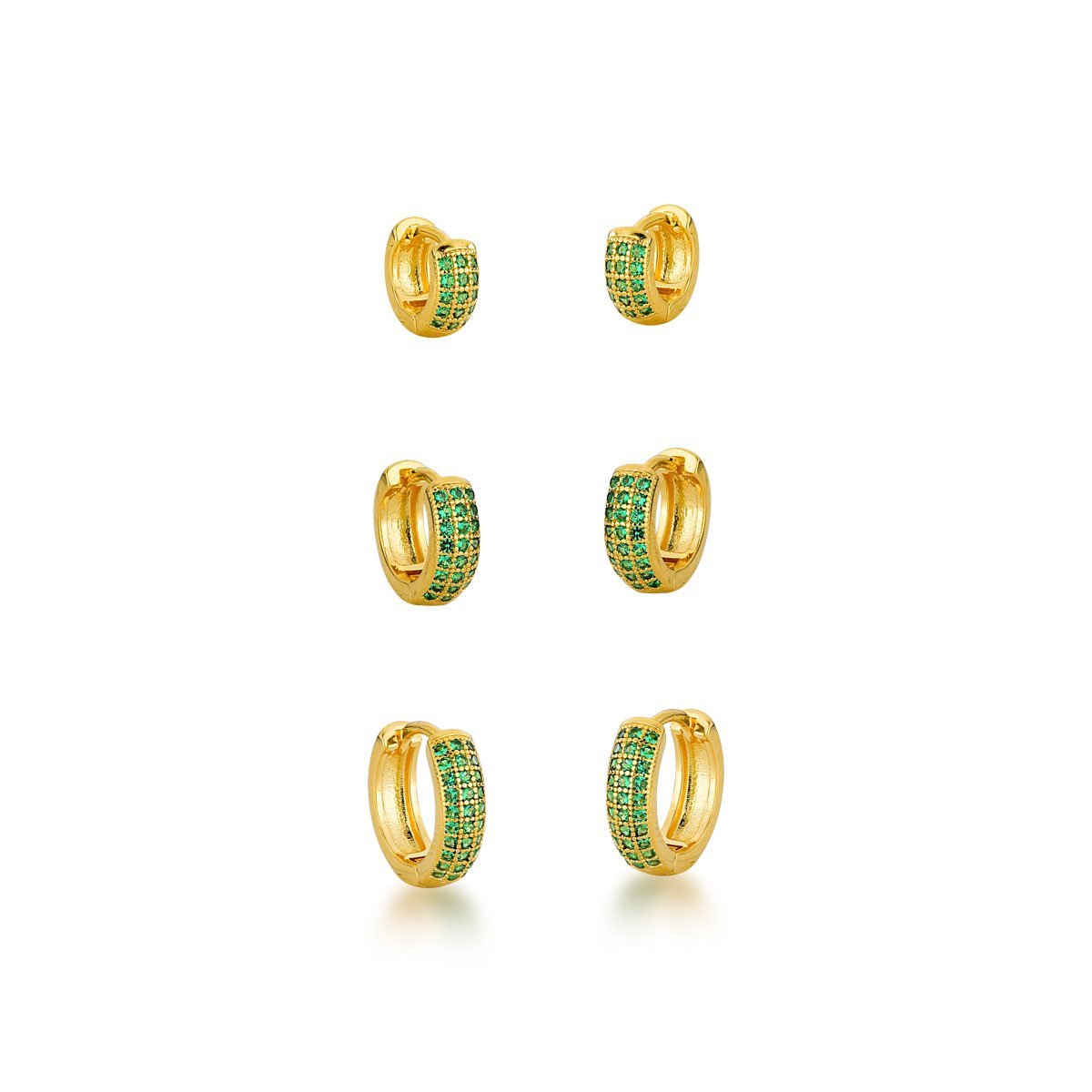 Kit Brincos Argolas cravejadas com Zirconias Banhadas a Ouro 18k