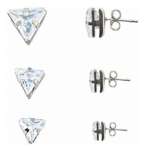 Kit Brincos Trio Triangulo De Zirconia Folheado A Prata Prata