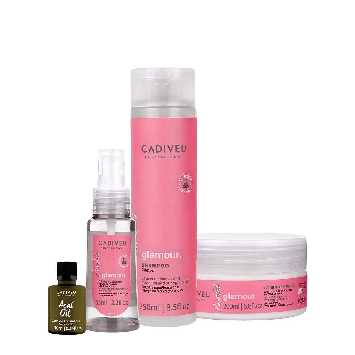 Kit Cadiveu Professional Essentials Glamour Shampoo Mascara Serum e Acai Oil 10 (4 produtos)