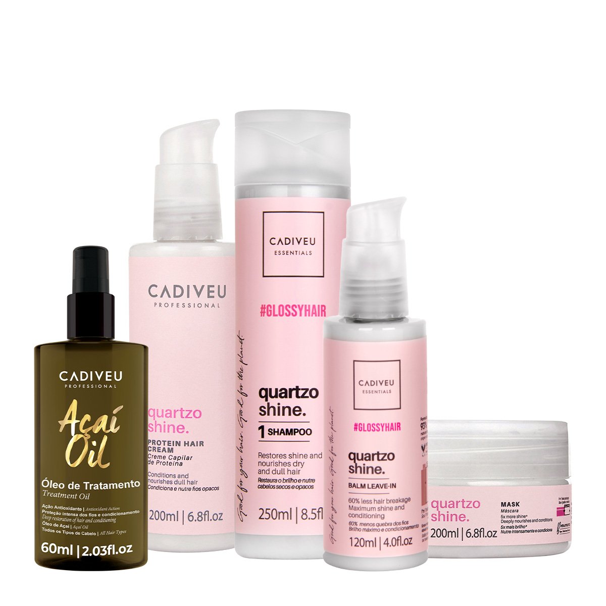 Kit Cadiveu Professional Essentials Quartzo Shine Shampoo Mascara Pre-Shampoo Leave-in e Acai Oil 60 (5 produtos)