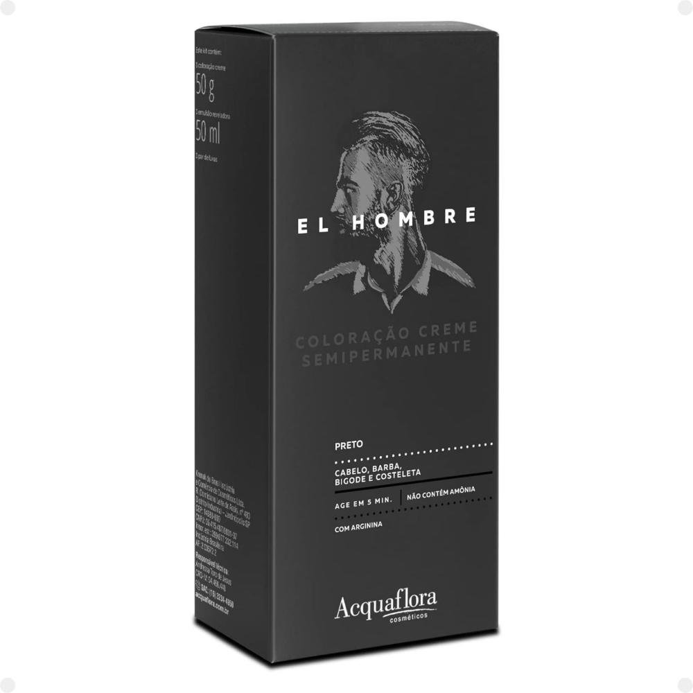 Kit Coloração Creme Semipermanente Acquaflora El Hombre Preto ÚNICO