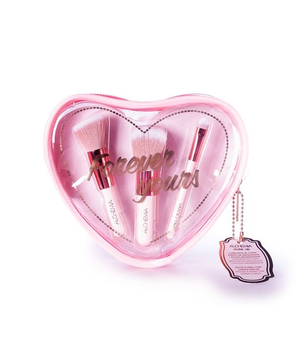 Kit com 3 Mini Pincéis com Estojo em Formato de Coração Alchemia