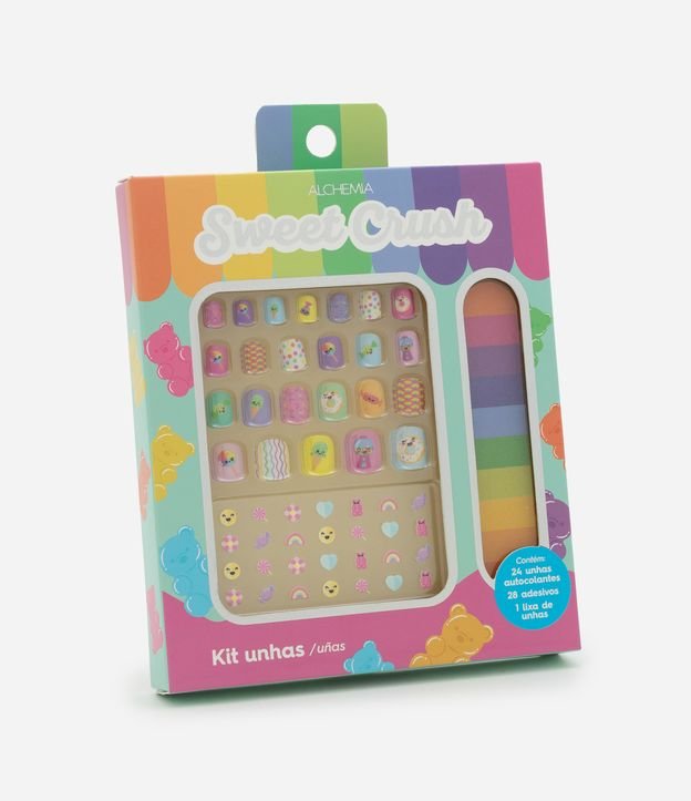 Conjunto com 24 Unhas Postiças Coloridas com Lixa e Adesivo Sweet Crush – Alchemia.Prepare-se para arrasar com um toque candy vibes! Este kit é puro arco-íris nas pontas dos dedos: 24 unhas postiças autocolantes, 28 adesivos fofíssimos e 1 lixa colorida para dar aquele acabamento perfeito. Com estampas candy e detalhes superdivertidos, é a escolha ideal para quem ama criatividade e quer mudar o look das unhas sem complicação.