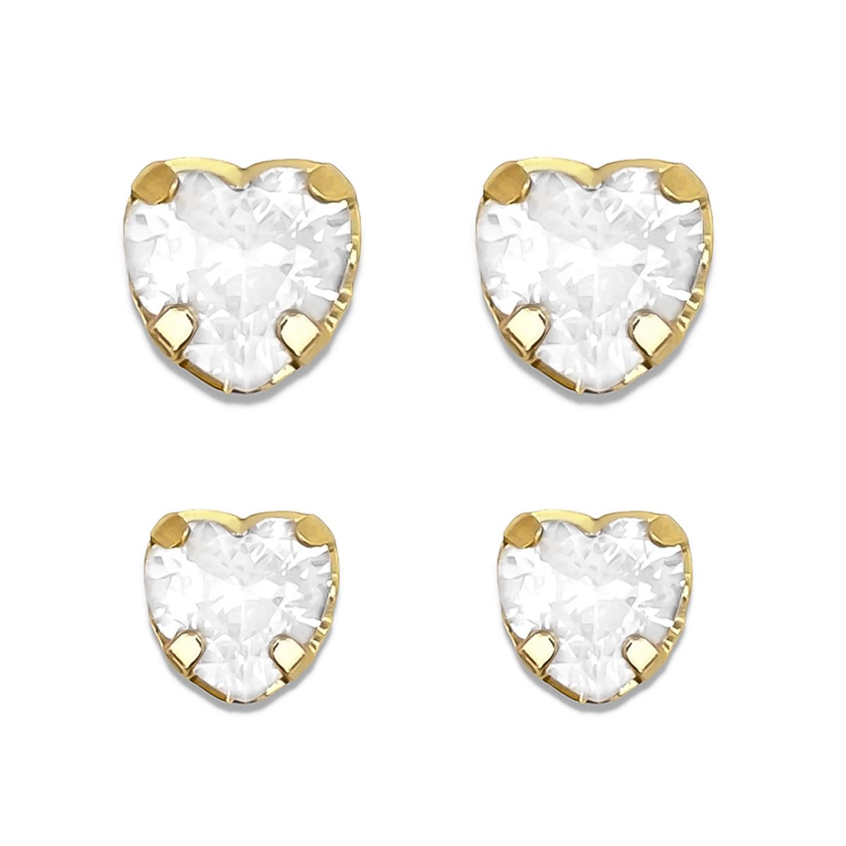 Kit Duo de Brincos Coracao Zirconia Cristal Banhado a Ouro 18K Semijoia