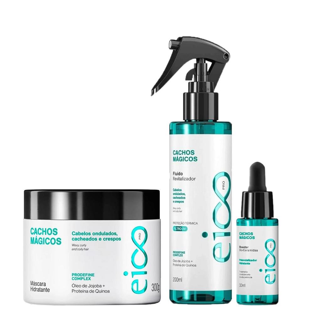 Kit Eico Pro Cachos Mágicos -  Máscara 300g + Fluido Revitalizador 200ml + Booster 30ml
