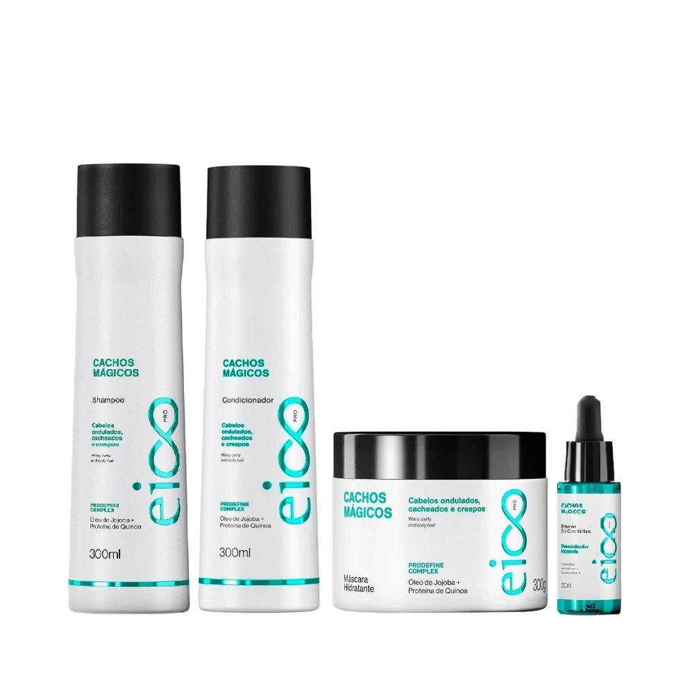 Kit Eico Pro Cachos Mágicos - Shampoo 300ml + Condicionador 300ml + Máscara 300ml + Booster 30ml