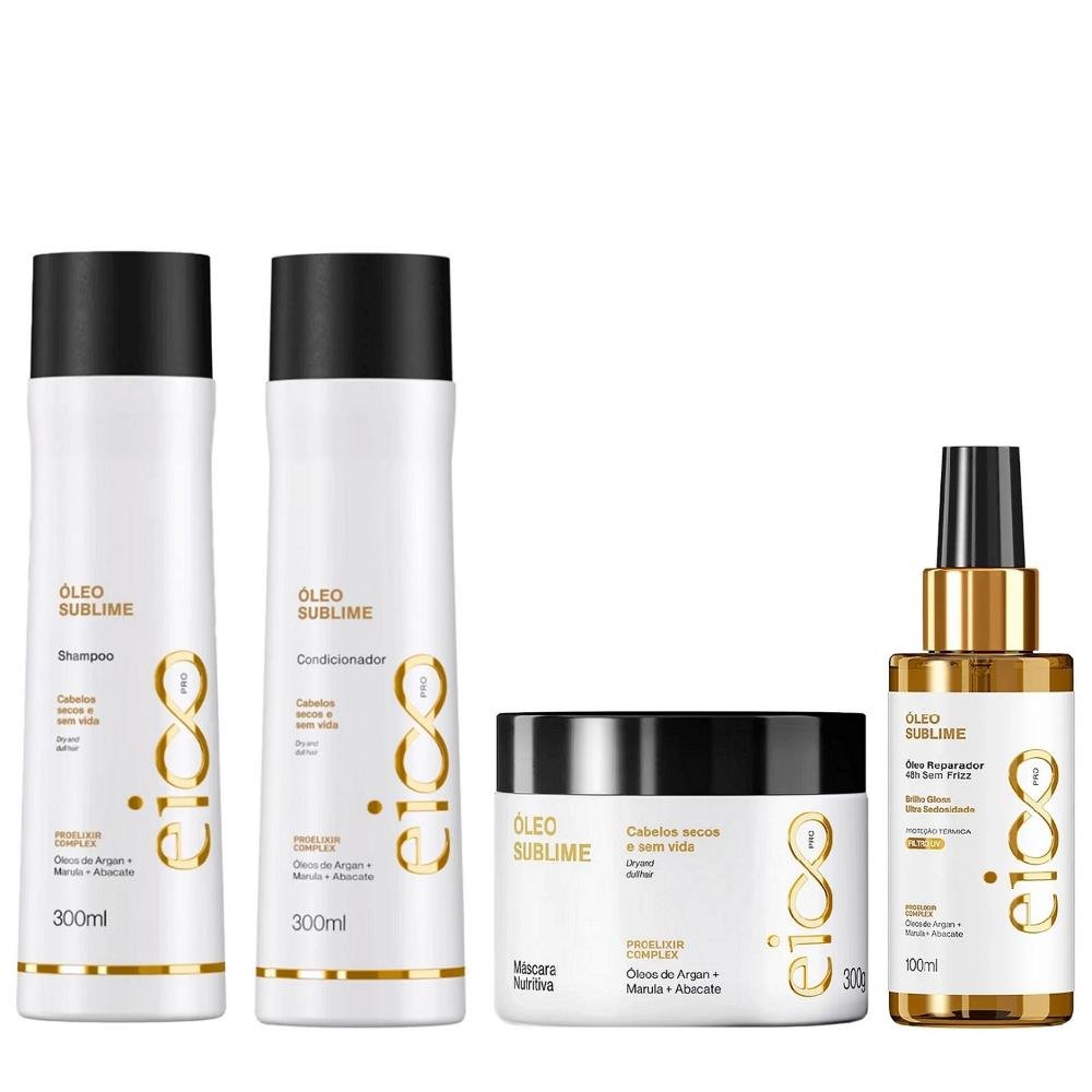 Kit Eico Pro Óleo Sublime - Shampoo 300ml + Condicionador 300ml+ Máscara 300g + Óleo 100ml