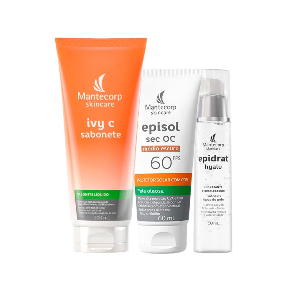Kit Facial Mantecorp - Protetor Solar FPS60 Médio Escuro e Sabonete Líq e Gel Hidratante