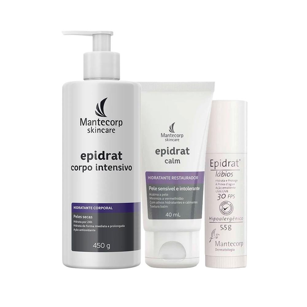 Kit Hidratantes Mantecorp Epidrat - Creme Facial Hidratante e Creme Corporal Hidratante e Hidratante Labial Fps30 5,5g