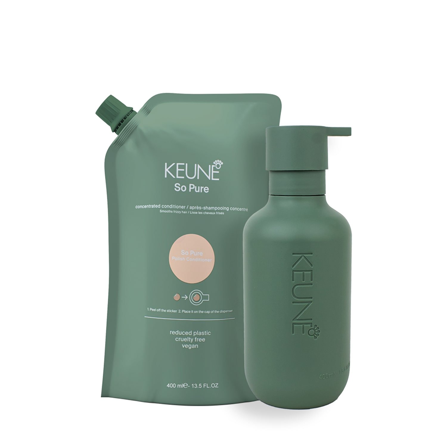 Kit Keune So Pure Polish Condicionador Refil e Dispenser Frasco (2 produtos) ÚNICO